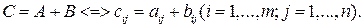 Суммой двух матриц А и В одинаковых размеров называется матрица С того же размера, элементы которой равны сумме соответствующих элементов матриц А и В: