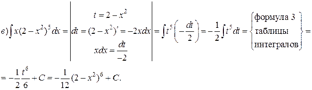Пример 6. Проинтегрировать подходящей заменой переменной (подведение под знак дифференциала).