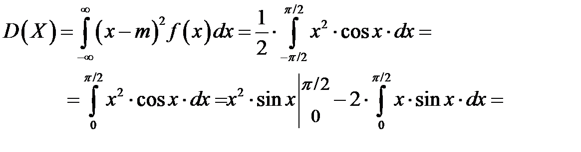 (как интеграл от нечетной функции по симметричному промежутку). Теперь вычисляем дисперсию и среднее квадратическое отклонение: