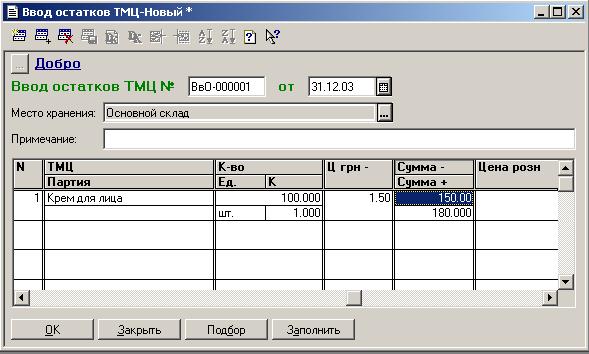 Рис. 13 Електронна форма документа «Ввод остатков»