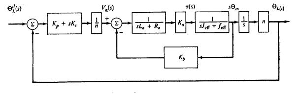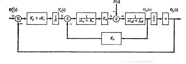 Рисунок 17.1. Управление с обратной связью одним сочленением манипулятора После нескольких простых алгебраических преобразований можно получить передаточную функцию замкнутой системы, представляющую собой отношение действительного углового перемещения
