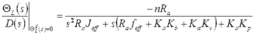 n – передаточное отношение редуктора, учитывающее приведение управляющего напряжения к валу двигателя. Передаточная функция, связывающая возмущения с действительным перемещением сочленения: