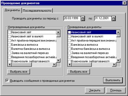 Рис. 2 Діалогове вікно Проведення документів.