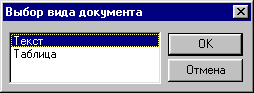 Рис. 6 Вікно вибору виду документа.