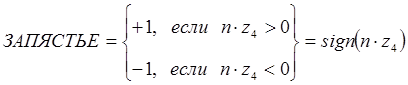 Для индикатора ЗАПЯСТЬЕ, следуя определению возможных конфигураций запястья (КИСТЬ ВВЕРХ/ВНИЗ), сформируем скалярное произведение единичных векторов s и у 5 (или z 4).
