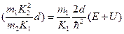 Анализ (1.8.8) показывает, что увеличение d, U, т1 или m2способствует втягиванию основного четного уровня в провал. Рассмотрим теперь влияние параметров системы на положение первого возбужденного (нечетного) состояния. Как следует из (1.8.5), выражение для определения разрешенных значений K может быть представлено как