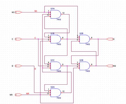 Индивидуальное задание: Выполнить проектирование 4-х разрядного счетчика на D-триггерах. Ø Часть I п1. Создать новый проект; п2. Выполнить проектирование D -триггера, согласно индивидуальному заданию. Схема D -триггера при его проектировании в системе OrCAD приведена на следующем рисунке: