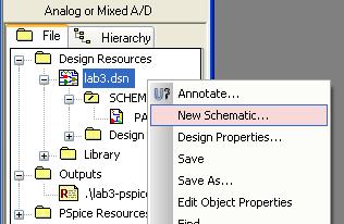 п4. Создать новый проект моделирования; п5. Создать в проекте новый раздел «Schematic» a. В окне «Analog or Mixed A/D» вызвать контекстное меню дизайна