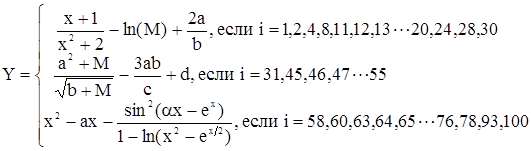 Program Prim9; Var i:integer; x,m,a,b,c,d:real; BEGIN writeln('введите значение i'); readln(i); writeln('введите значения x,m,a,b,c,d'); readln(x,m,a,b,c,d);