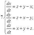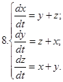 Базова ВПРАВИ ПИТАННЯ ДЛЯ САМОПЕРЕВІРКИ 1. Яка система диференціального рівняння називається нормальною? 2. Що називається розв’язком нормальної системи диференціальних рівнянь? 3. Запишіть загальний вигляд нормальної системи лінійних рівнянь із сталими коефіцієнтами? 4. Що називається характеристичним рівнянням нормальної системи лінійних рівнянь із сталими коефіцієнтами? 5. Запишіть загальний розв’язок нормальної системи лінійних рівнянь із сталими коефіцієнтами? І Розв’язати систему диференціальних рівнянь із сталими коефіцієнтами зведенням їх до однорідних диференціальних рівнянь другого порядку. 1. 2. 3. 4. 5. ІІ Знайти загальний розв’язок системи лінійних диференціальних рівнянь із сталими коефіцієнтами.