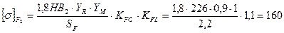 При перевірці міцності колеса порівнюють дійсну напругу з допустимою. Допустима напруга згинання при розрахунку на витривалість