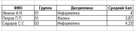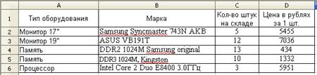 5. Изучение методов сортировки и фильтров отображения данных - Создайте на новом листе таблицу: