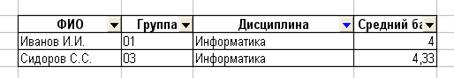 Быстрый фильтр Сортировка Данные в таблице можно сортировать пункт меню Данные Сортировать. Сортировку можно проводить по трём уровням (сначала данные в таблице сортируются по одному полю, затем по второму и т.д.). Фильтрация записей позволяет отображать на экране для обработки только те записи, которые отвечают заданным критериям. При этом остальные строки оказываются скрытыми. Установка автофильтра осуществляется командой Данные Фильтр Быстрый фильтр. В результате в таблице после названия каждого столбца помещается стрелка раскрывающегося списка, с помощью которого задаются критерии отбора записей. Можно задать условия в нескольких полях. Они будут работать по принципу логического И. Для одного поля можно указать два условия, соединенные как логическим И, так и ИЛИ. Раскрывающийся список после имени столбца выводит меню, в котором можно выбрать: уникальное значение из предложенного списка; все - все строки таблицы; 10 первых – первые 10 строк таблицы; Стандартный фильтр – который позволяет задать условия для поиска информации в таблице; Пример: найти все записи, где ФИО начинается с буквы А или Л. Порядок действий: щелкнуть по стрелке раскрывающегося списка в столбце ФИО, выбрать в появившемся меню пункт Стандартный фильтр; задать в диалоговом окне в столбце условие значение Начинается с, в столбце значение - А, в столбце оператор - установить переключатель равным ИЛИ и повторить значения в строке, только для буквы Л.