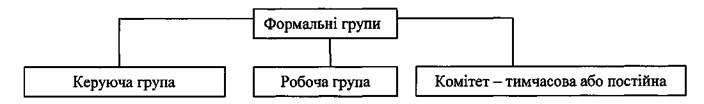 Формальні групи створюються за ініціативи керівництва організації. Існує три головних типи таких груп (рис. 4.2): ● група керівництва (командна); ● робочі групи (цільові);