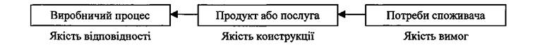 ● календарний сітьовий графік будується на підставі визначення тривалості операцій; ● критичний шлях проекту - це найтриваліша послідовність операцій. Для зменьшення тривалості проекту потрібно зменшити довжини критичного шляху. Резерв часу - це різниця між максимально і мінімально можливою тривалістю операцій. Резерв часу має зміст лише у тих операціях, що не лежать на критичному шляху, забезпечує гнучкість календарного планування. Раніше сітьове планування застосовувалость головним чином, для великих проектів. Нині з розвитком персональних комп'ютеров сітьові методи дуже поширені і програмне забезпечені навіть у разі проектів малого обсягу. Забезпечення якості. Якість - це відносний термін, але має три аспекти: якість відповідності технічним умовам; якість конструкції; функціональна якість, вимоги (рис. 5.8.).