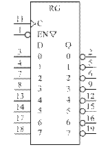 Рисунок В.17 – Восьмиразрядный регистр, управляемый по фронту, с параллельным вводом-выводом данных, с тремя состояниями и инверсией на выходе