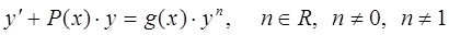 где P(x) и g(x) – заданные функции или постоянные. 4) Уравнение Бернулли
