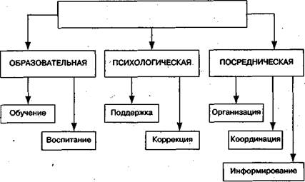 Неблагополучные семьи, имея низкий социальный статус в какой-либо из сфер жизнедеятельности или в нескольких одновременно, не справляются с возложенными на них функциями, их адаптивные способности существенно снижены, процесс семейного воспитания ребенка протекает с большими трудностями, медленно, малорезультативно. Для данного типа семьи необходима активная и обычно продолжительная поддержка со стороны социального педагога. В зависимости от характера проблем социальный педагог оказывает таким семьям образовательную, психологическую, посредническую помощь в рамках долговременных форм работы. Асоциальные семьи — те, с которыми взаимодействие протекает наиболее трудоемко и состояние которых нуждается в коренных изменениях. В этих семьях, где родители ведут аморальный, противоправный образ жизни и где жилищно-быто-вые условия не отвечают элементарным санитарно-гигиеничес-ким требованиям, а воспитанием детей, как правило, никто не занимается, дети оказываются безнадзорными, полуголодными, отстают в развитии, становятся жертвами насилия как со стороны родителей, так и других граждан того же социального слоя. Работа социального педагога с этими семьями должна вестись в тесном контакте с правоохранительными органами, а также органами опеки и попечительства. Деятельность социального педагога по работе с семьей Объектом воздействия социального педагога могут быть ребенок в семье, взрослые члены семьи и сама семья, в целом, как коллектив. Деятельность социального педагога с семьей включает три основных составляющих социально-педагогической помощи: образовательную, психологическую, посредническую, которые схематично представлены ниже (стр. 1 77). Рассмотрим последовательно каждую из составляющих. Образовательная составляющая включает в себя два направления деятельности социального педагога: помощь в обучении и воспитании. Помощь в обучении направлена на предотвращение возникающих семейных проблем и формирование педагогической культуры родителей. К наиболее типичным ошибкам в воспитании относятся: недостаточное представление о целях, методах, задачах воспита- ния; отсутствие единых требований в воспитании со стороны Поэтому деятельность социального педагога предусматривает проведение широкого просвещения родителей по следующему кругу вопросов: — педагогическая и социально-психологическая подготовка родителей к воспитанию будущих детей; — роль родителей в формировании у детей адекватного поведения в отношении к сверстникам; — значение личного примера и авторитета родителей в воспитании детей, атрибуты роли отца и матери, отношений между детьми; — взаимоотношения различных поколений в семье, методы педагогического воздействия на детей, формирования позитивных отношений между детьми и взрослыми; — воспитание детей в семье с учетом пола и возраста; — социально-психологические проблемы воспитания «трудных» подростков, проблемы отрицательного влияния безнадзорности и беспризорности на психику ребенка; — сущность самовоспитания и его организации, роль семьи в руководстве процессом самовоспитания детей и подростков; — поощрение и наказание в воспитании детей в семье; — наиболее распространенные ошибки родителей в воспитании детей; — особенности воспитания детей с отклонениями в физическом и 