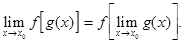 Операция предельного перехода перестановочна с операцией вычисления непрерывной функции, т. е. справедлива формула Если функция Функция