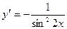 1) Знайти похідну функції а) 2) Знайдіть похідну функції у = х5 – 2х: а) 3) Знайдіть похідну функції у = 6х – 2ех: а) 4) Знайти похідну функції у = ctg 2x: а) 5) Знайдіть значення похідної у = а) 6) Знайдіть критичні точки функції А) -4; Б) 2; В) -2 і 2; Г) відсутні. 7) Знайти кутовий коефіцієнт дотичної до графіка функції А) 1; Б) 0; В) -1; Г) інша відповідь. 8) Знайти тангенс кута нахилу дотичної до графіка функції у = х - х3 в точці х0 = 0 А) -1; Б) 0; В) 1; Г) інша відповідь. 9) Скласти рівняння дотичної до графіка функції у = х3 – х2 в точці з абсцисою х0 = -1: А) у = 5х + 7; Б) у = 5х + 3; В) х2 - 4; Г) інша відповідь 10) Точка рухається за законом S = t3 + 3t2. Знайти миттєву швидкість точки у момент часу t = 1с. (S – вимірюється в метрах) А) 4 м/с; Б) 9 м/с; В) 12 м/с; Г) інша відповідь 11) Відомо, що похідна функції А) спадає; Б) зростає; В) не зростає; Г) не спадає. 12) Знайти проміжки зростання функції у = -х2 + 2х – 3: А) (-∞; ∞); Б) (-∞; 1); В) [1; ∞); Г) інша відповідь. 13) Знайти проміжки спадання функції у = -3х2 + 24х + 2: А) (-∞; 4); Б) (-∞; -4]; В) [4; ∞); Г) інша відповідь. 14) Знайти критичні точки функції А) -2; 2; 0; Б) -2; 2; В) 2; Г) інша відповідь. 15) Знайти критичні точки функції А) 4; Б) 0; В) 0; 4; Г) інша відповідь. 16) Знайти екстремуми функції у = х2 + 2х - 3: А) уmax = y (1) = 0; Б) уmin = y (-1) = -4; В) уmax = y (-1) = -4; Г) уmin = y (0) = -3. 17) Знайти точки екстремума функції у = 2х3 – 3х2: А) хmax = 0; хmin = 1; Б) хmax = 1; хmin = 0; В) хmax = -1; хmin = 0; Г) інша відповідь. 18) Знайти найбільше та найменше значення функції А) 2; -2; Б) -4; 0; В) -3; -2; Г) інша відповідь. 19) Знайти найбільше та найменше значення функції А) 20) Знайти приріст функції А) -0,001; Б) 3,999; В) 0,001; Г) інша відповідь. 21) Знайти приріст функції А) 0,21; Б) -0,21; В) 0,2; Г) -0,2. 22) Площа прямокутника дорівнює 81 см2. Знайти найменший можливий периметр цього прямокутника: А) 54 см; Б) 18 см; В) 72 см; Г) 36 см.