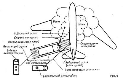 1. Общие положения 1.1. В настоящее время предпринимаются все усилия для увеличения безопасности на борту современных самолетов всеми возможными средствами. 1.2. К сожалению, учитывая возможность ошибок со стороны людей и несовершенство техники, все еще необходимо считаться с возможностью авиационных аварий и катастроф. 1.3. Управление аэродромов гражданской авиации должно предусмотреть средства борьбы с пожарами на аэродромах Австралии и других территориях, зависящих от этого доминиона. 1.4. Послевоенные пожарные машины имеют много усовершенствований, которых не было у машин военного и довоенного времени, но основные принципы их использования и применения остались без существенных изменений. 1.5. Послевоенная пожарная машина была улучшена путем увеличения емкости баков (цистерн) и повышения проходимости, но она еще не в состоянии приблизиться к горящему самолету и в некоторых критических случаях все усилия спасательной команды обречены с самого начала на неудачу. 1.6. Всем известны типичные причины загорания самолетов на земле: самолет задел за провода высокого напряжения, самолет произвел вынужденную посадку на фюзеляж. В первом случае происходит потеря скорости, в других — поломки, достаточные для того, чтобы поставить под угрозу жизнь людей, находящихся в самолете. 1.7. В результате этих аварий обычно происходит повреждение или загорание топливных баков. Часто случалось так, что при посадке самолет получал незначительные повреждения и находящиеся в нем люди не страдали при самом падении, "о потом этот самолет оказывался окруженным пламенем горящего топлива, что сводило почти на нет шансы на самостоятельное спасение находящихся в нем людей. 1.8. Такие катастрофы происходят обычно непосредственно на аэродромах или поблизости от них, и, учитывая это, необходимо требовать максимума эффективности от имеющихся на аэродромах пожарных машин и от обслуживающих их боевых расчетов. 1.9. К сожалению, в прошлом не раз случалось, что спасательные средства и применявшиеся методы оказывались в случае таких катастроф неэффективными. Многие люди погибали в огне, так как пожарные машины были весьма маломощными, а Управление аэродромов ничего не предусматривало для этого. 1.10. Эти являющиеся типичными случаи аварий самолетов весьма многочисленны и разнообразны по степени своей серьезности: здесь и ужасная катастрофа, произошедшая 29 мая 1947 г. на аэродроме Лагардия (США), и менее серьезные аварии, вызванные ошибками, допущенными при пилотировании (примером может служить авария на аэродроме Кингсфорд-Смит в Сиднее в ноябре 1952 г.). 1.11. Детальное изучение различных пожаров самолетов на земле и различных других происшествий послужило основой для исследований, предпринятых с целью спасания жизни людей, находящихся в горящем самолете, 1.12. Время, которым располагают спасающие для выполнения своей работы, очень ограниченно, и, когда пожарные машины задерживаются с прибытием к месту пожара, температура часто бывает слишком высокой и уже не позволяет немедленно начать работы,по спасанию. Часто усилия пожарных направляются вначале на то, чтобы снизить температуру и тем самым позволить начать действия по спасанию. 1.13. Такой способ ведет к потере времени, и, если огонь проникает внутрь фюзеляжа, часто бывает слишком поздно осуществить любую попытк