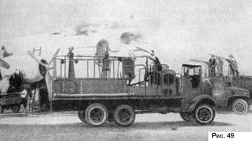 Рис. 49. Огонь ликвидирован. Однако машины продолжают оставаться у самолета, готовые в любой момент возобновить атаку, если огонь возникнет снова.