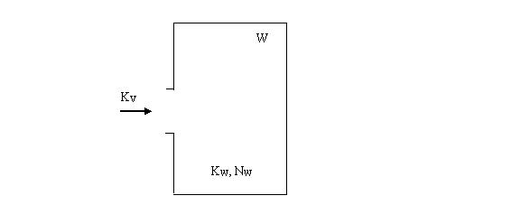 Необходимо определить количество Kw и среднюю концентрацию молекул Nw в объеме W. При взаимодействии свободномолекулярного потока с объемом имеют место два следующих процесса: - увеличение числа молекул в объеме со скоростью Kv; - уменьшение числа молекул в объеме со скоростью x·Kw, где: x - коэффициент, показывающий какая часть молекул вылетает из объема в единицу времени. Тогда можно записать: