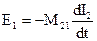При замыкании тока в первом контуре, во втором индуцируется ЭДС электромагнитной индукции Очевидно, что Ф2=М12I1, тогда Если поменять местами источник тока и гальванометр, то при замыкании второй цепи, в первой будет индуцироваться ЭДС Пусть Ток I1, протекая по первичной обмотке, создает на оси соленоида индукцию