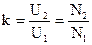 Трансформаторы имеют высокий коэффициент полезного действия (99%). Они удобны в эксплуатации. Одной из основных характеристик трансформатора является коэффициент трансформации Будем полагать, что магнитный поток не рассеивается. В первичной обмотке возникает ЭДС самоиндукции В режиме холостого хода i2= 0, Иногда в качестве вторичной обмотки используется часть первичной, такое устройство называют автотрансформатором.