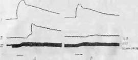 Круг папецА 2 страницаВесьма интересно, что достаточно интенсивное раздражение симпатических центров гипоталамуса может привести к повышению секреции гормонов мозгового вещества надпочечников, влияние которых складывается с действием общего разряда симпатической системы. Это отчетливо видно по реакции органа, лишенного симпатической иннервации. Из ф,нг. 2, Б видно, что слабое раздражение гипоталамуса вызывает сокращение интактио-го (/), но не денервированного (//) третьего века, незначительное повышение кровяного давления и умеренное учащение сердечного ритма. При более интенсивном раздражении (ф.иг. 2, А) не только усиливаются эти симпатические реакции, но и происходит сокращение денервированного третьего века. Поскольку возможность его возбуждения нервным путем исключена (так как оно денсрвировано), можно предположить, что возбуждающим агентом служит химическое вещество, приносимое кровью. Соответствующие эксперименты показали, что ПРИНЦИПЫ ОРГАНИЗАЦИИ НЕРВНОЙ СИСТЕМЫ 71 речь идет о гормоне мозгового вещества надпочечников. Этот гормональный эффект проявляется значительно позже, чем прямой эффект возбуждения симпатического нерва. Такая задержка характерна для гормональных влияний и связана с тем, что для переноса гормонов от соответствующих желез до органов-мишеней необходимо некоторое время [316].