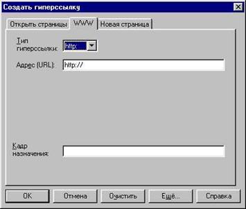 Рис. 9.4. Диалоговое окно Создать гиперссылку