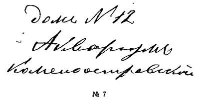Образец № 8. В этом почерке заметна страсть к подражанию и выставлению своих способностей. Каллиграфические, как бы срисованные жестами (штрихами) буквы указывают на коммерческую оборотливость, страсть к подрядам, но отсутствие проницательности, слабую сообразительность, глупость и доверчивость, деятельность без достаточной практичности, но не бездарность, а лишь незнание тонкостей дела.