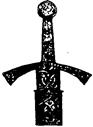 Столкновение рыцарей с восточною конницей заставило рыцарей улучшить свое вооружение, почему уже с конца XII века у них появляется длинный щит, почти такой же, как и у пехотинца. В XIII столетии потребность в длинном щите исчезает, так как кольчуга достаточно защищает всадника, и поэтому к началу XIV столетия щиты становятся меньше, железных полос и навершья уже нет, а щит мало - помалу принимает треугольную форму, по своей величине прикрывая лишь несколько более половины груди и левое плечо. Такой щит получил название тарча (tartsche, petit ecu), иногда делался металлический и всегда покрыт геральдическими изображениями (рис. 172). С конца XIV века являются различные формы тарча: полукруглая, четырехугольная (например, в Англии и Франции), квадратная, овальная и другие. Мечи этого времени очень длинны, массивны и имеют два лезвия. Острие их довольно тупое, так что они не могут служить для укола, но лишь для удара. Сталь превосходно закалена и очень тверда, причем металл почти не пострадал от ржавчины. Рукоять имеет крестообразную форму, образованную трубкой ее и несколько изогнутыми вниз дужками. Трубка рукояти имеет вверху пластинку, над которой иногда помещается пуговка верхней заклепки. Длина мечей около 1 метра. Таким образом, к этому времени меч получает совершеннейшее устройство, которое он сохраняет до эпохи Возрождения. Клинок обоюдоострый; обух его сужается в стержень, иногда для прочности имеющий в начале утолщение; конец стержня закрепляется вверху рукояти. Рукоять устроена таким образом: нижняя часть ее имеет прямоугольное отверстие для прохода стержня и, если опускается на клинок, то называется щитком. Она имеет два разветвления, образующие с трубкой рукояти крест, называющиеся дужками. Трубка, обыкновенно, делается из дерева, которое покрывается плетеной железной проволокой и стягивается кольцами: над трубкой помещается металлический шарик - головка рукояти. Стержень клинка проходит через трубку и головку, которая нередко оканчивается маленькой пуговкой, где заклепывается конец его. В конце XII столетия трубка часто удлиняется настолько, что мечом можно действовать одной или двумя руками. Плоский клинок образует на каждой стороне двойной откос и имеет посередине широкий желобок (долу), который или проходит до оконечности клинка, или пресекается на его нижней трети. В эту эпоху мечи часто заостряются, как стрелы, и даже сильнее, и могут делать страшные уколы, так как хорошо направленный удар двумя руками может поломать кольца кольчуги. Ножны деревянные и покрываются кожей или материей и привязываются к поясной портупее на перевязи, каждый конец которой, разрезанный на ремни, образует плетеное кожаное кольцо.