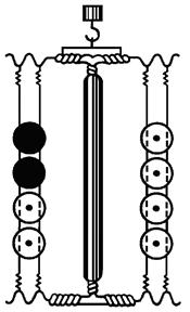 Таким образом, давление, оказываемое светом на поверхность пропорционально энергии фотонов, их плотности в световом потоке (N/S – плотность потока или отношение числа фотонов, попадающих на поверхность к площади этой поверхности), а также зависит от отражающей способности поверхности тела. Эти выводы в 1901 г. экспериментально проверены П. Н. Лебедевым. Им был сконструирован подвес (рис. 2.4), на котором на легчайшей стеклянной нити были закреплены очень тонкие металлические «крылышки» – темные и светлые диски толщиной 0.01 – 0.1 мм. При такой толщине крылышки имели равномерную температуру, что позволило избежать введения поправок на температурный градиент (отличие температуры слоев, находящихся на различной глубине).