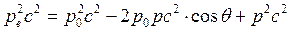 где p0 и p – импульсы фотона до и после столкновения, pe – импульс электрона после столкновения с фотоном (до столкновения импульс электрона равен нулю). Возведем в квадрат выражение (2.30) и помножим на с2: