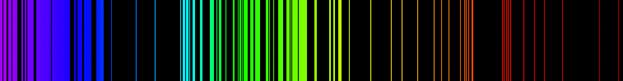 Рис. 3.2. Видимая часть спектра атома железа Уединённый атом имеет бесконечно много уровней. В реальной среде различные взаимодействия с соседними частицами приводят к тому, что у атома остаётся только конечное число нижних уровней. Например, в условиях звёздных атмосфер в спектре атома водорода обычно различают 20 – 30 линий, но в разреженном межзвёздном газе могут наблюдаться сотни уровней, но не более тысячи. Число линий в спектре атома железа даже в земных условиях составляет несколько тысяч (рис. 3.2). Некоторое время ученые пытались как-то систематизировать линии в спектрах атомов. Первым успеха добился швейцарский физик Бальмер. Изучая спектр атома водорода в 1885 г. он обнаружил, что длины волн линий из серии, располагающейся в видимом диапазоне, удивительно точно описываются формулой: где λ0 – константа, n – целое число, принимающее значения 3, 4, 5 и т.д. Если длину волны выразить через частоту, получится формула: