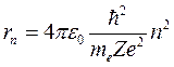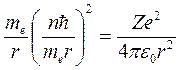 откуда Подставим (3.8) в (3.4): Выразив отсюда r, получим значения радиусов орбит электрона в атоме: