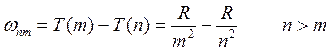 Радиус первой орбиты атома водорода называется боровским радиусом, его значение равно В спектроскопии частоты спектральных линий представляют в виде разности положительных чисел T(n), называемых термами. Для атома водорода Частота фотона, излучаемого при переходе из состояния n в состояние m, определяется формулой: