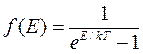 Такая ситуация реализуется, например, для коллектива фотонов в замкнутой полости. Фотоны непрерывно поглощаются и излучаются стенками полости, т.е. число частиц постоянно меняется. С помощью распределения Бозе-Эйнштейна можно выяснить, какое количество частиц n в системе имеет энергию E. Зависимость количества частиц от значения энергии показана на рисунке (10.1) и выражается формулой: