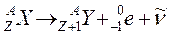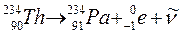 где Процесс протекает так, как если бы один из нейтронов ядра превратился в протон, претерпев превращение, описываемое схемой 13.1 (см. раздел 13). β -распад (любой из 3-х видов β -распада) может сопровождаться испусканием γ -кванта. Механизм возникновения этого явления при β -распаде тот же, что и при α -распаде. Примером β -распада может служить превращение тория Th234 в протактиний Pa234 с испусканием электрона и антинейтрино.