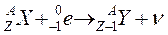 3) Электронный захват является третьим видом β -распада, он заключается в том, что ядро поглощает один из электронов из K -оболочки собственного атома. Реже происходит захват электронов из L - или M -оболочки. Процесс протекает по схеме: