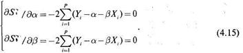 Систему такого виду називають системою нормальних рівнянь. Розв'язок системи, тобто знаходження а і В, визначається таким чином - де Значення на прямій регресії, яке отримаємо методом найменших квадратів,