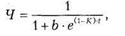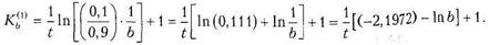 де: b — характеристика ринку, що відображає умови конкуренції; є — основа натурального логарифму. Показник (К) у рівнянні (8.7) є саме тим показником, який відповідає |раніше визначеному критерію конкурентоспроможності виробника З виразу (8.8) можна отримати: