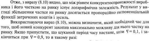 де: Отриманий результат можна перевірити так. Підставляємо значення часток ринку (відповідно 0,1 і 0,9) для двох моментів часу у формулу (8.10). Для 1-го моменту часу з часткою ринку 0,1: