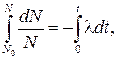 где λ — коэффициент пропорциональности, называемый постоянной распада. Разделяя переменные и интегрируя, получаем