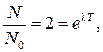 где N 0 — начальное число ядер при t = 0; N — число ядер в момент времени t. Выражение (94.1) называют законом радиоактивного распада. Мерой быстроты распада является период полураспада T — время, в течение которого распадается половина первоначального числа ядер. Если в выражении (94.1) t = T, имеем