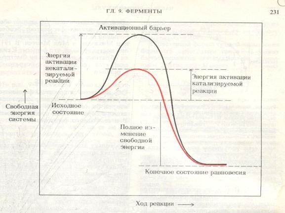 Биологическая роль ферментов- ферменты значительно снижают энергетический барьер химических реакций.