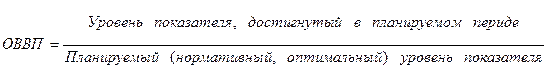 Относительная величина планового задания может быть представлена в форме коэффициента или процента. Относительная величина выполнения плана (ОВВП) представляет собой отношение фактически достигнутого в данном периоде уровня к запланированному (нормативному, оптимальному).