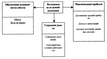 Стратегия тесной увязки уровня цен с качеством товара и др. Таким образом, предприятие, выбирая одну из ценовых стратегий, реализует ценовую политику, целью которой может быть: - обеспечение выживаемости (стабилизация); - удержание рынка; - максимизация прибыли (рис 1).