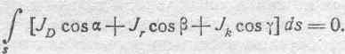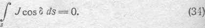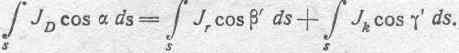 В скобках заключена сумма проекций некоторых векторов на направление внешней нормали. Эту сумму можно заменить проекцией результирующего вектора на то же направление. Обозначим плотность результирующего тока через J и угол, образуемый им с внешней нормалью, через 8. В таком случае можем написать: